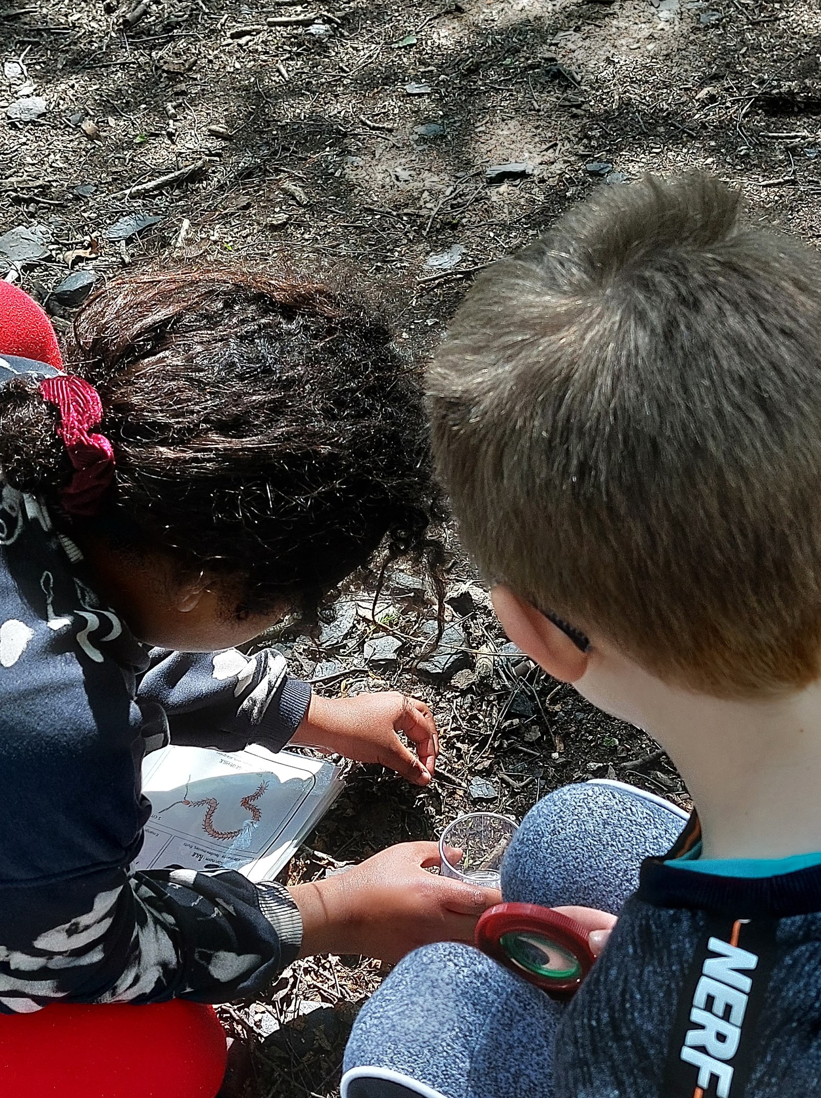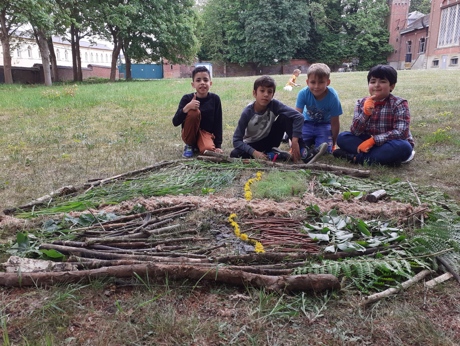 Durant quelques mois, le projet culture-école « terrils explorés, terrils rêvés » a permis aux enfants de la 3ème année primaire de l’Ecole Libre de Bois-du-Luc d’allier les dimensions nature, patrimoine et art pour créer un lien fort avec ces collines qui marquent leur ligne d’horizon. Ces mamelons faits de terres et de pierres venues des profondeurs de la mine, rebut du travail de leurs ancêtres. En arpentant de long en large le terril Albert 1er, les enfants ont d’abord côtoyé la biodiversité au plus près et découvert son évolution au fil du temps et des saisons. Ils ont fait un avec la nature en courant sur les sentiers, en dévalant les pentes raides, en collectant des éléments à observer au microscope, en cherchant des fossiles, en écoutant monter la sève des arbres, en caressant leur tronc, en cherchant à reconnaître les petites bêtes, en respirant les parfums des fleurs, en écoutant les chants des oiseaux ou le vent faisant craquer les troncs. Ils ont joué aux explorateurs avec leur carte et leur boussole.