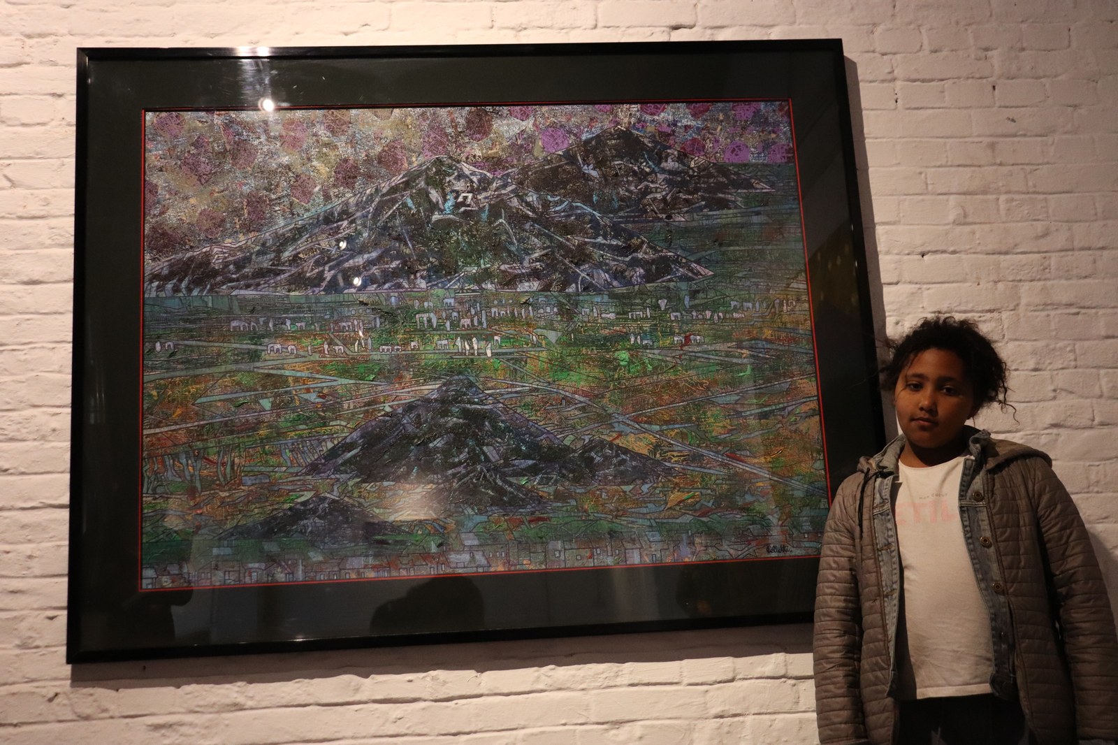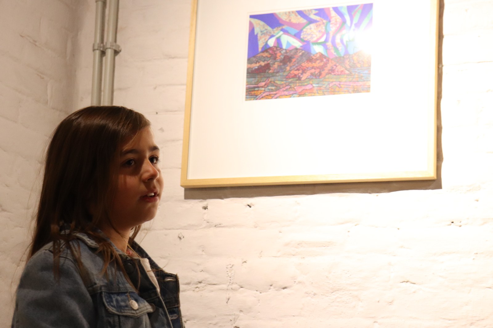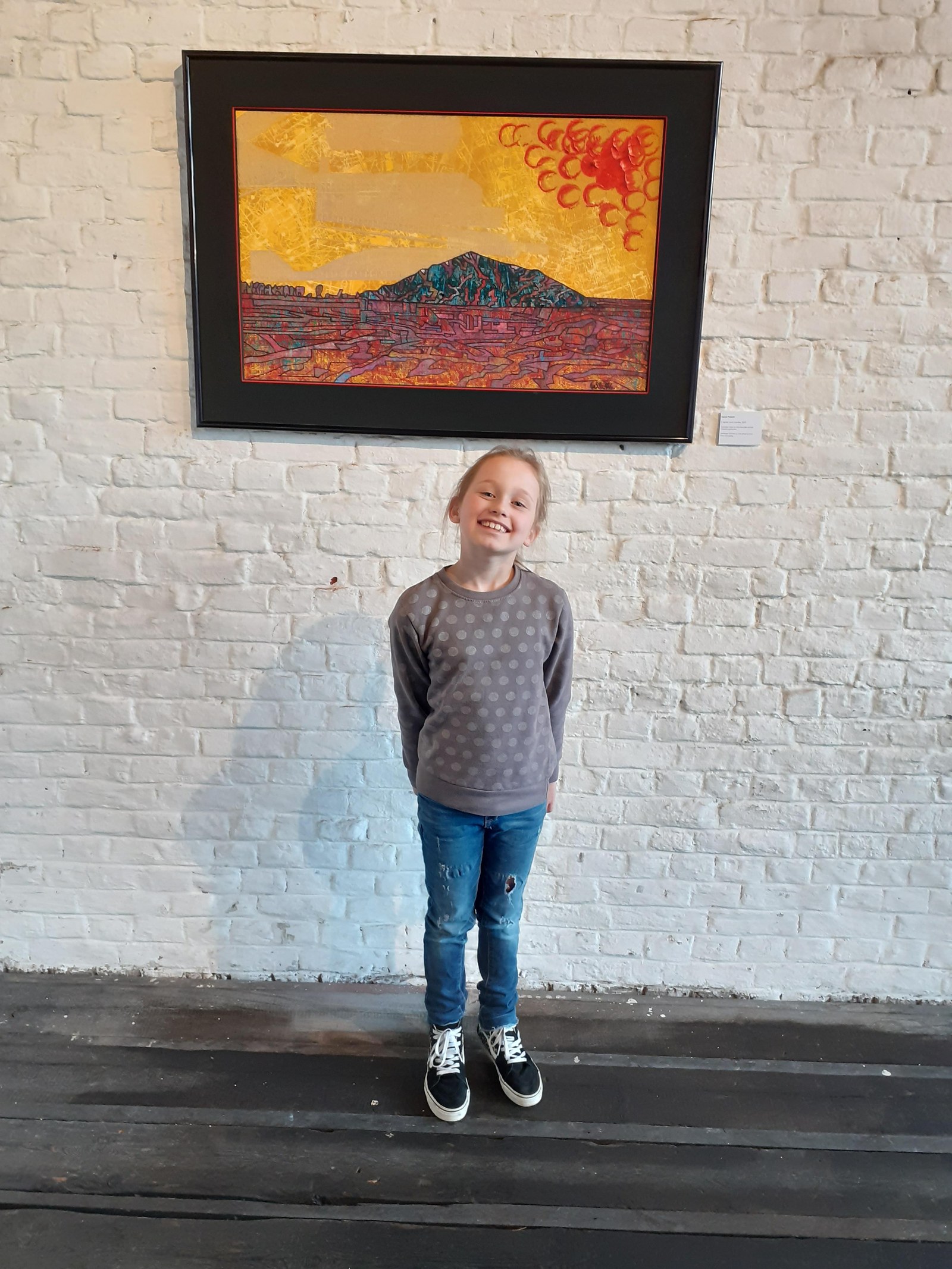Maëlyne : « J’aime bien celui-ci parce qu’en bas, il a voulu montrer les couleurs qu’il a mises dans son tableau. Il y a des motifs qui font penser à de gros rochers, comme dans l’ancien temps ceux qui dessinaient dans les grottes »