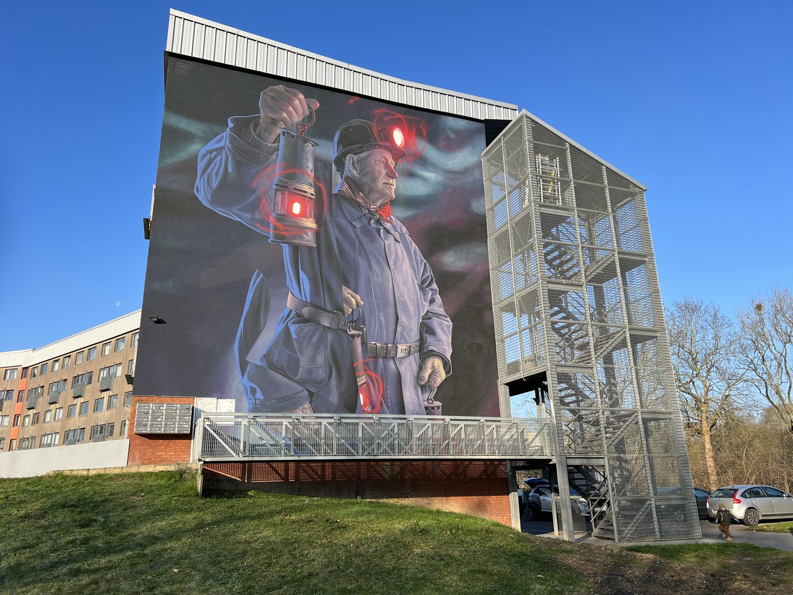 Cette œuvre, réalisée par le duo hollandais Telmo & Miel, rend hommage au passé minier de la ville de La Louvière et représente Marco Recchia, ancien mineur du Bois-du-Luc qui nous fera l’honneur de sa présence.