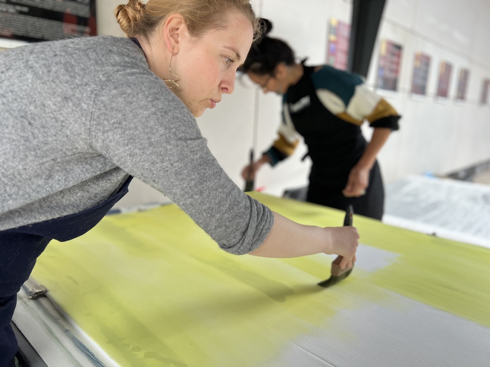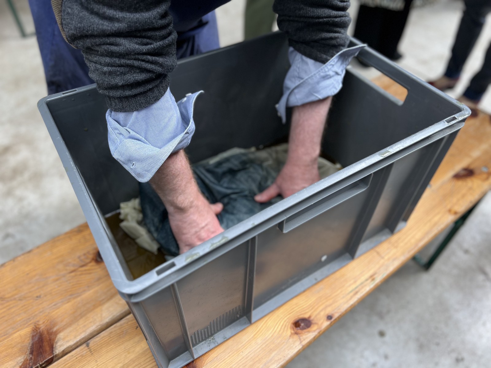 Guidée par Olivier Guyaux, l'œuvre sera sans doute l'un des plus grands cyanotypes composés au monde. Une installation mutée aux tanins bruns et noirs qui ne pouvait être conçue qu'au Bois-du-Luc puisqu'elle sera rehaussée de charbon et ne mobilisera que des produits naturels.